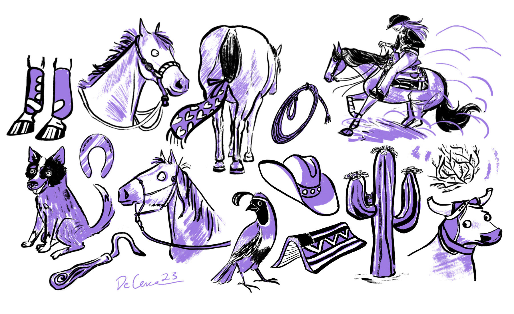 My favorite subject of all! I’ve been riding horses for most of my life, so I’m your go-to if you need equestrian illustrations. I know a D-ring from an eggbutt, and obsess over equitation in my drawings as much as in real life.